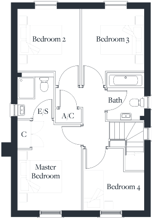 Floor plans, dimensions and configurations are included for guidance only, may be subject to revision during construction, please refer to current drawings with a Sales Executive. Kitchen & furniture layouts are indicative only. H – Handed, C – Cupboard, A/C – Airing Cupboard, W – Wardrobe, E/S – En-suite.